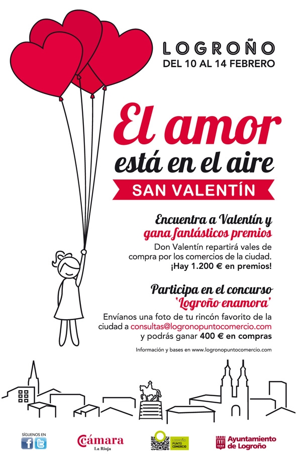 El Ayuntamiento de Logroño y la Cámara de Comercio e Industria de La Rioja, a través de Logroño Punto Comercio, han organizado la iniciativa comercial ‘San Valentín, el amor está en el aire’, que se desarrollará en la semana entre el 10 y el 14 de febrero.