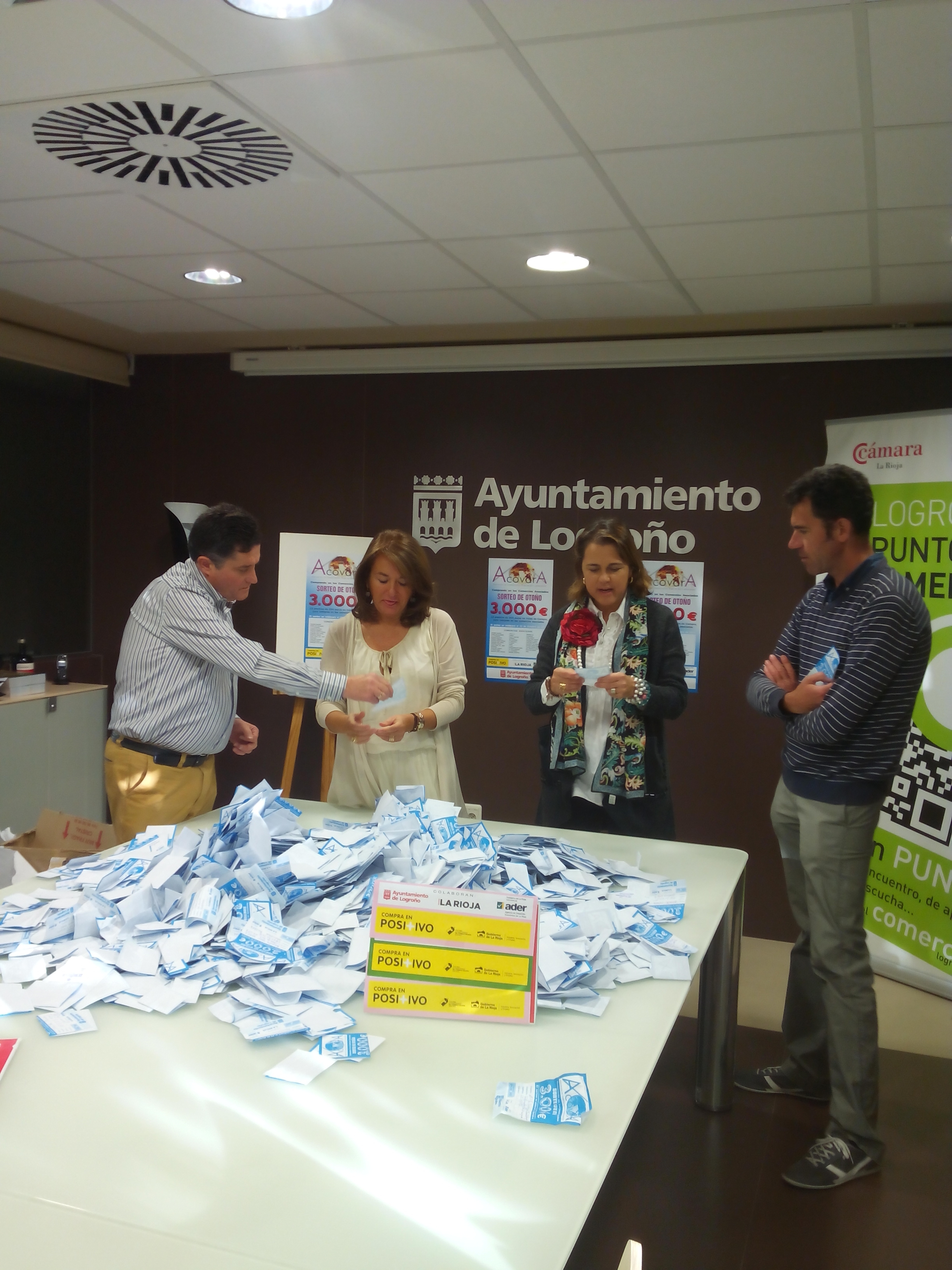 La asociación de Comerciantes Vara de Rey y Adyacentes “ACOVARA” ha realizado esta mañana en las instalaciones de Logroño Punto Comercio el Sorteo de Otoño en el que repartirán 3.000 euros que comprenden un total de 15 premios de 200 euros en vales de compra para canjear en los comercios pertenecientes a la asociación. Al evento han asistido la concejal Elena Eguizabal, la responsable de Logroño Punto Comercio, Laura Gil, el presidente y vicepresidente de la Asociación, Juan José San Miguel y Nacho Burgos, respectivamente.